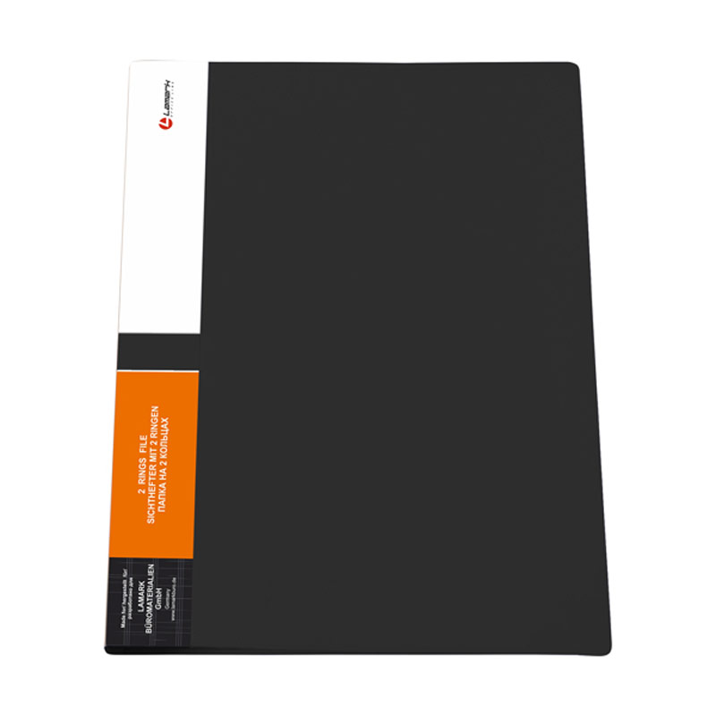 Папка Lamark на 2 кольцах диаметром 25 мм, корешок 32 мм, толщина пластика 0,60 мм. Цвет черный. На корешке карман с индексной вставкой. Идеальна для подборки и хранения документов.